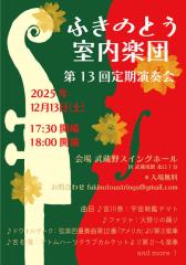 ヴィヴァルディ「冬」、モーツアルト「フルート4重奏曲」、バッハフルートソナタハ長調他、チャイコフスキー、エルガー、グリークなどの小品。
