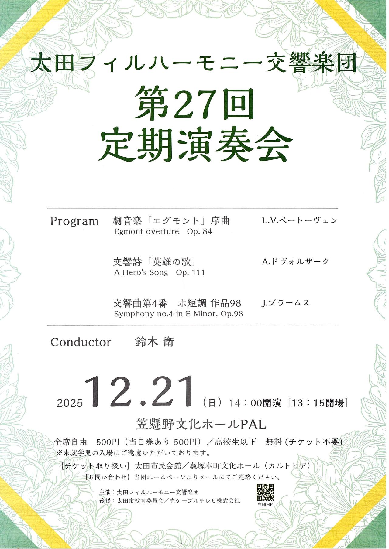 主催:太田フィルハーモニー交響楽団 後援:太田市教育委員会・光ケーブルテレビ株式会社