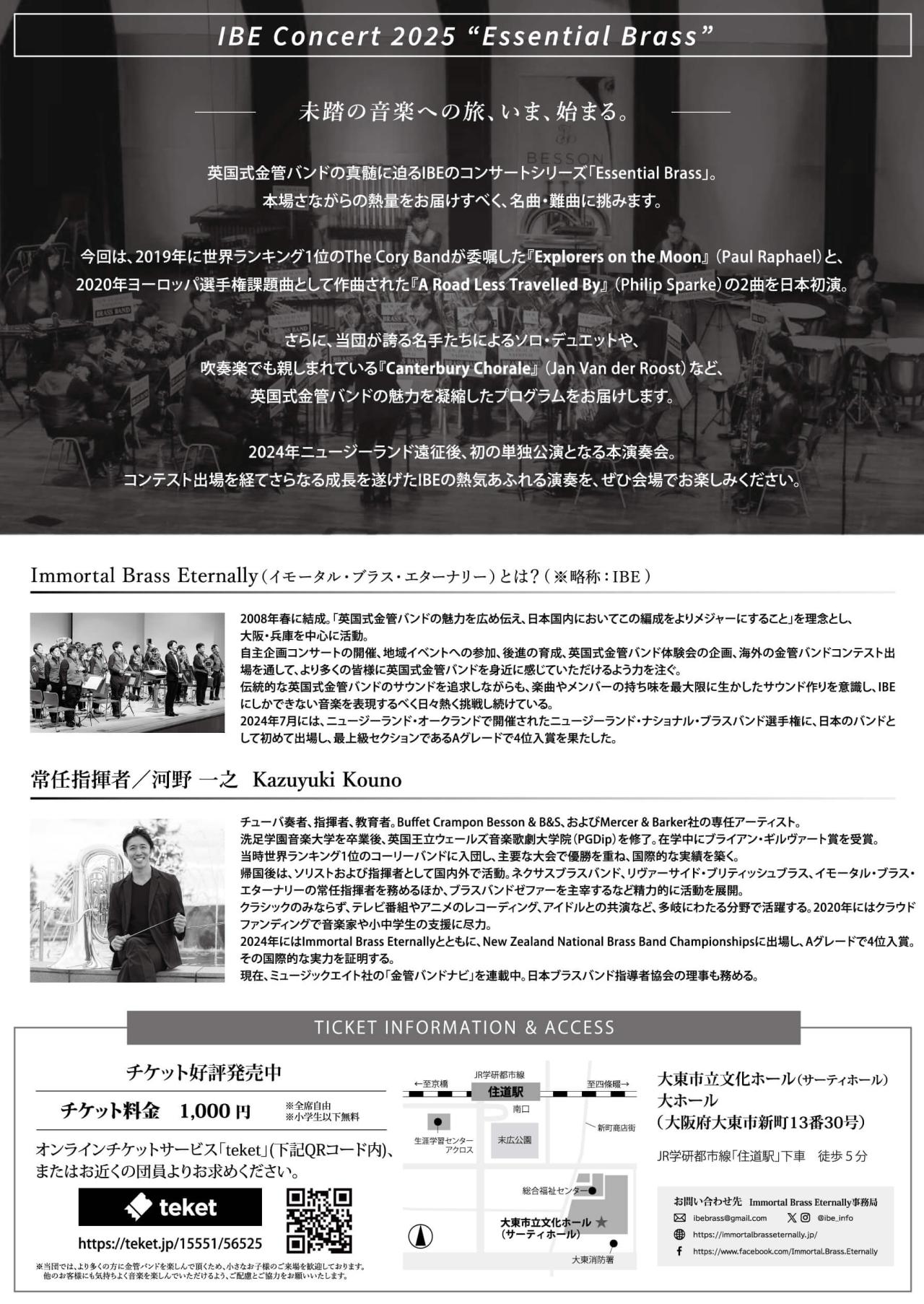 2024年ニュージーランド遠征後、初の単独公演となる本演奏会。コンテスト出場を経てさらなる成長を遂げたIBEの熱気あふれる演奏を、ぜひ会場でお楽しみください。