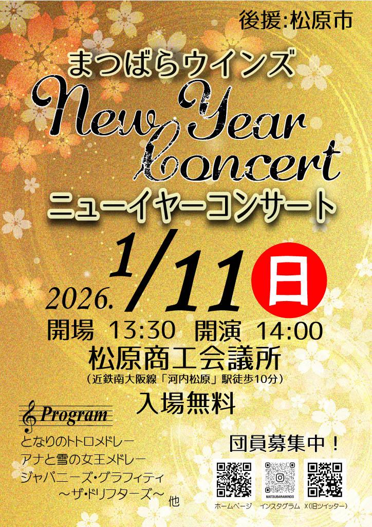 2026年は「まつばらウインズ」の演奏会で、ハッピーに幕を開けましょう!!