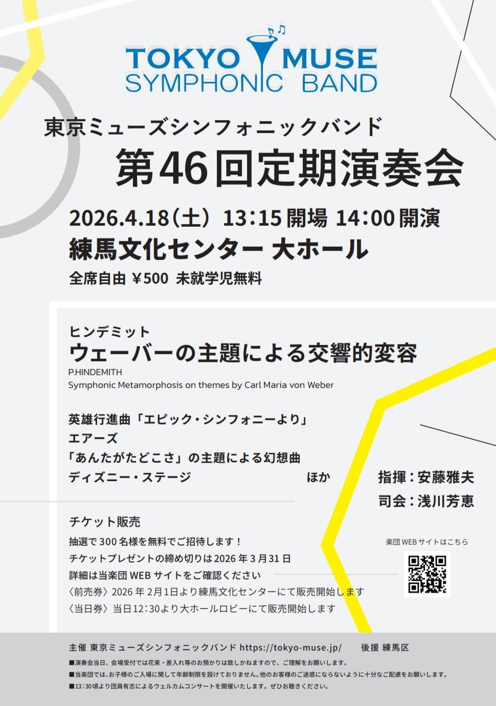 東京ミューズシンフォニックバンド第46回定期演奏会では、作曲家ヒンデミットの傑作や遊び心溢れるコンクール課題曲など、これぞ吹奏楽の醍醐味といえる名曲の数々をご用意しています。