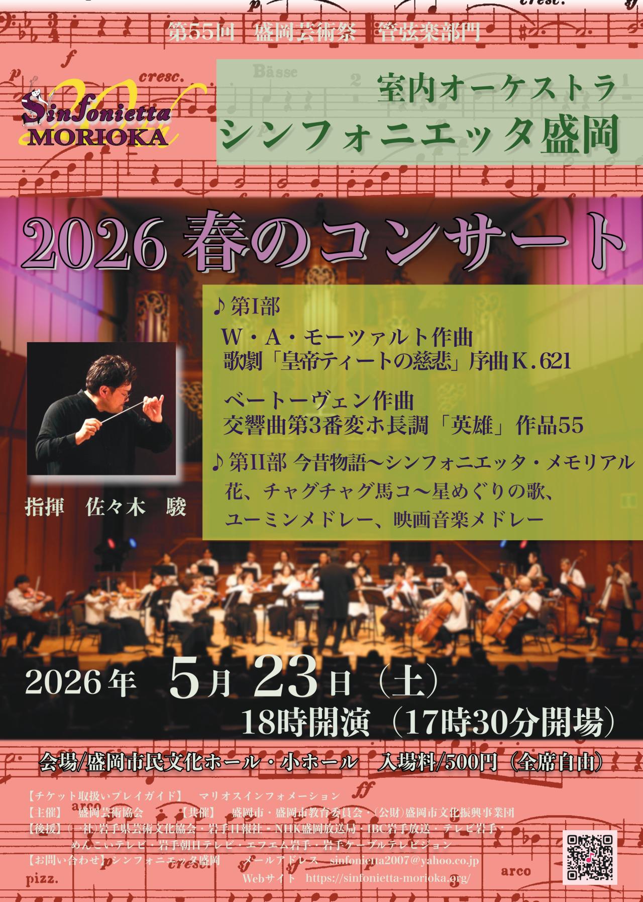 毎年恒例のシンフォニエッタ盛岡の春のコンサートは、佐々木駿指揮のもと、1部はモールァルト歌劇「皇帝ティートの慈悲」序曲、ベートーヴェン「英雄」をお送りします。当団ではおなじみのモーツァルト、室内オーケストラならではのクラシックをお楽しみに♪