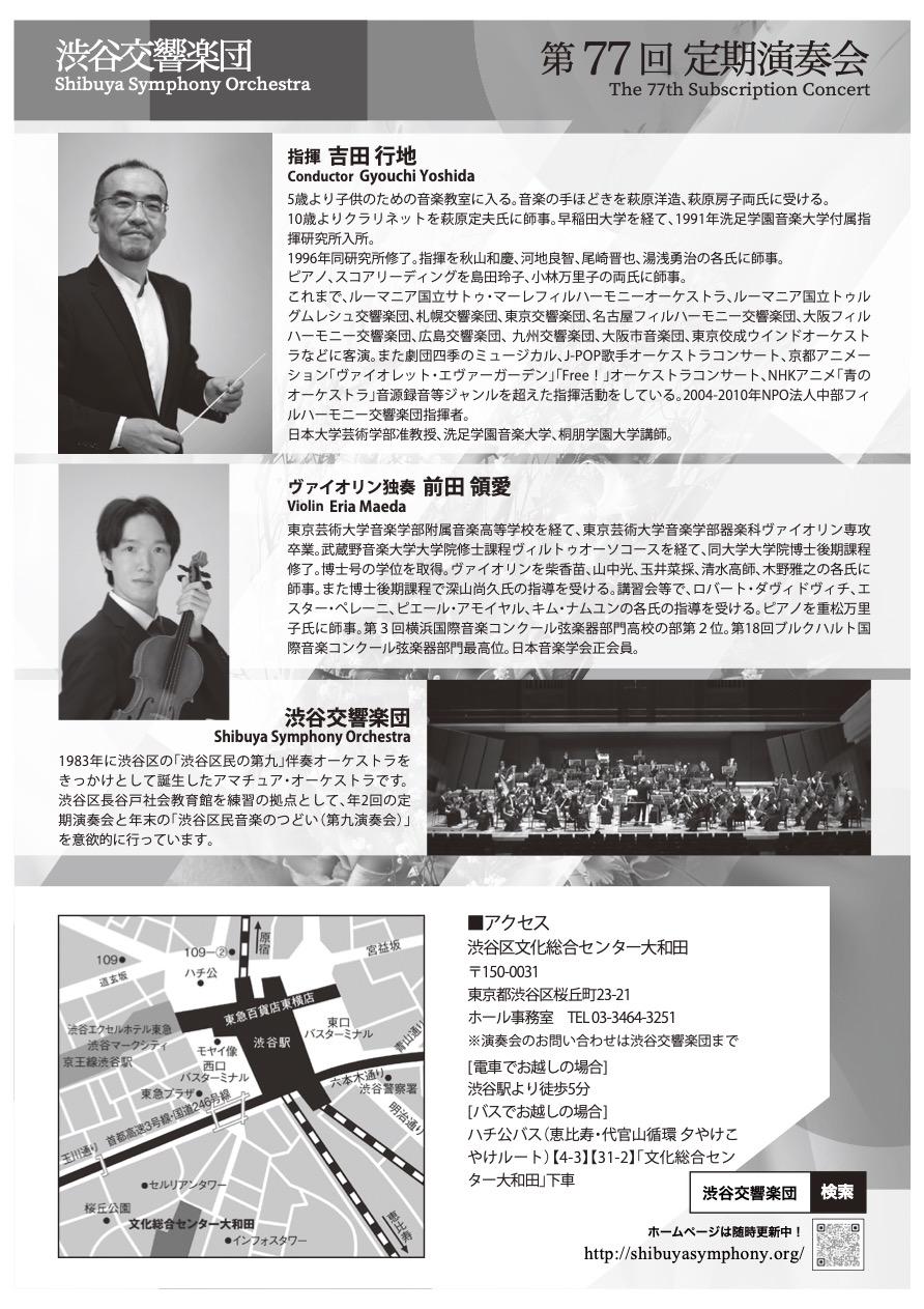 第58回定期演奏会以来2度目の共演となる前田領愛さんをソリストにお迎えしたメンデルスゾーンの名曲と、ブラームスの“田園交響曲”とも呼ばれ親しまれている交響曲第2番を演奏します。