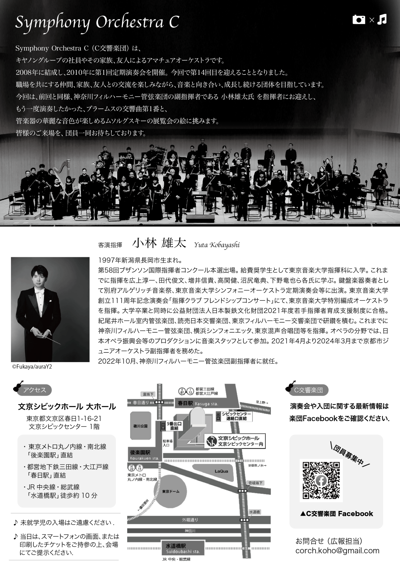 キヤノングループの社員とその家族、友人によるアマチュアオーケストラです。ぜひお越しください。