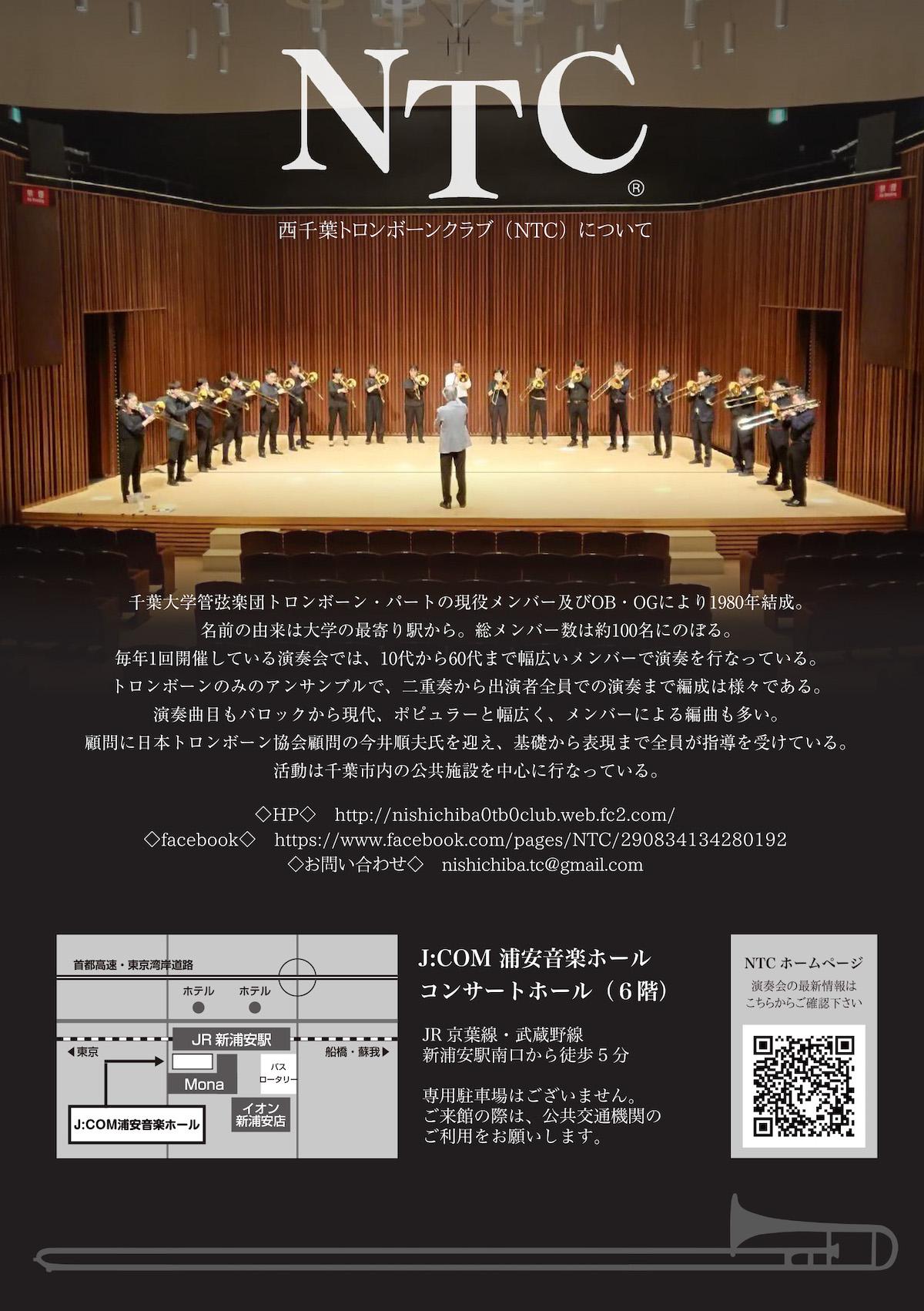 私たち西千葉トロンボーンクラブ(NTC)は、千葉大学管弦楽団トロンボーンパートの現役生及びOBOGによるアンサンブル団体です。