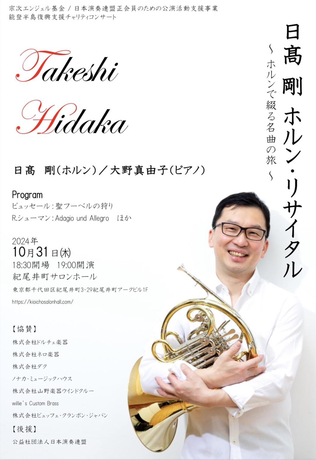 東京藝術大学准教授、日本センチュリー響、新日本フィル首席ホルン奏者の日髙剛氏のホルンリサイタルが2024年10月31日に行われます。