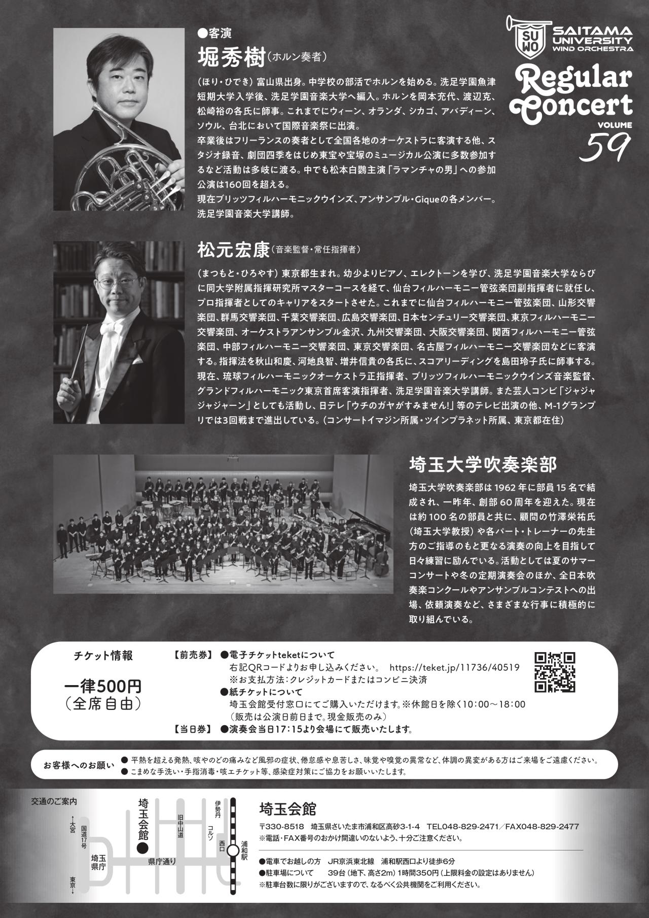 演奏会当日、17:15より会場にて当日券(紙チケット)の販売もございます。(一律500円、全席自由)