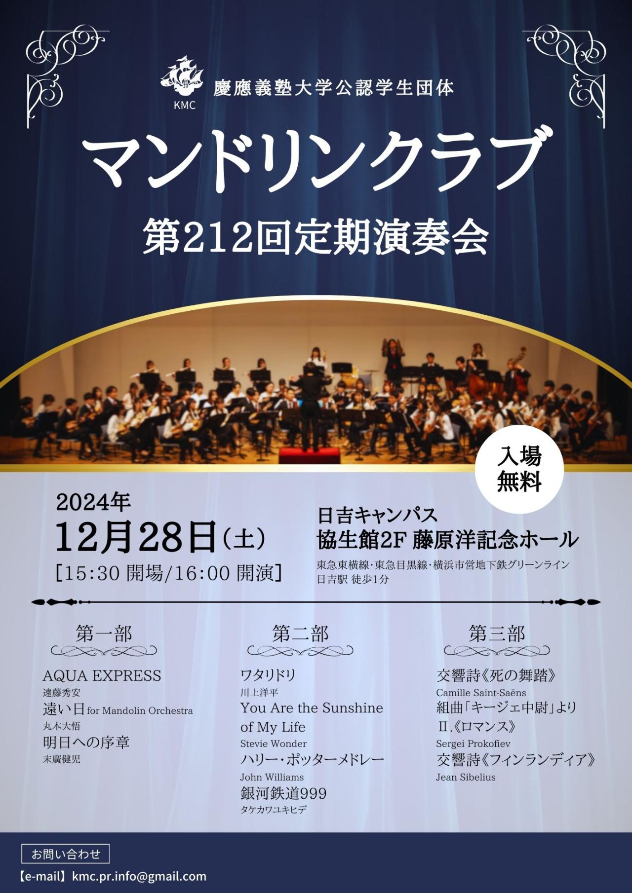 慶應義塾大学公認学生団体マンドリンクラブに所属している約80人の学生が演奏いたします。