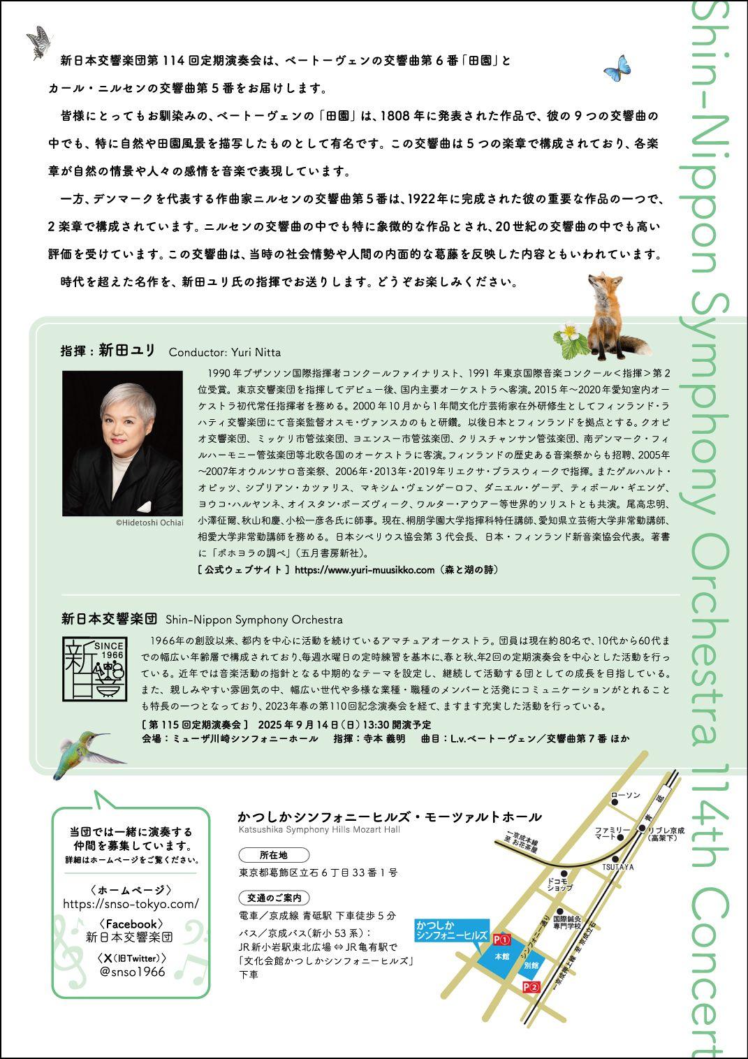 新日本交響楽団第114回定期演奏会は、ベートーヴェンの交響曲第6番「田園」とカール・ニルセンの交響曲第5番をお届けします。
