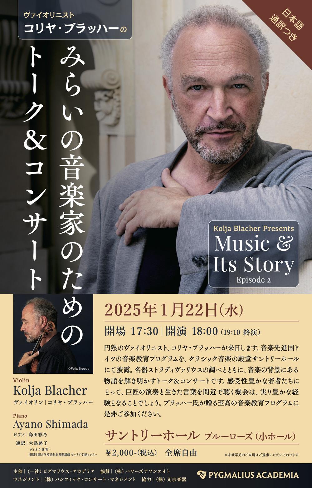 2023年に浜離宮朝日ホールにて開催された「こどものためのトーク&コンサート」は大好評を博し、大手新聞でも紹介されました。 今回はベートーヴェンのヴァイオリン協奏曲と、バッハの無伴奏ヴァイオリン・パルティータを題材に、感受性豊かな日本の若者に向けた「音楽教育」について、演奏と言葉で語ります。