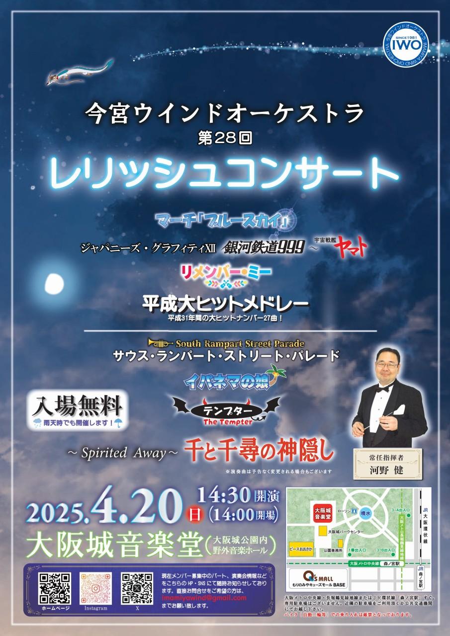 毎年春に開催しているポップス主体コンサートで、今年はなんと6年ぶりに大阪城音楽堂で野外コンサートとしてお届けします!