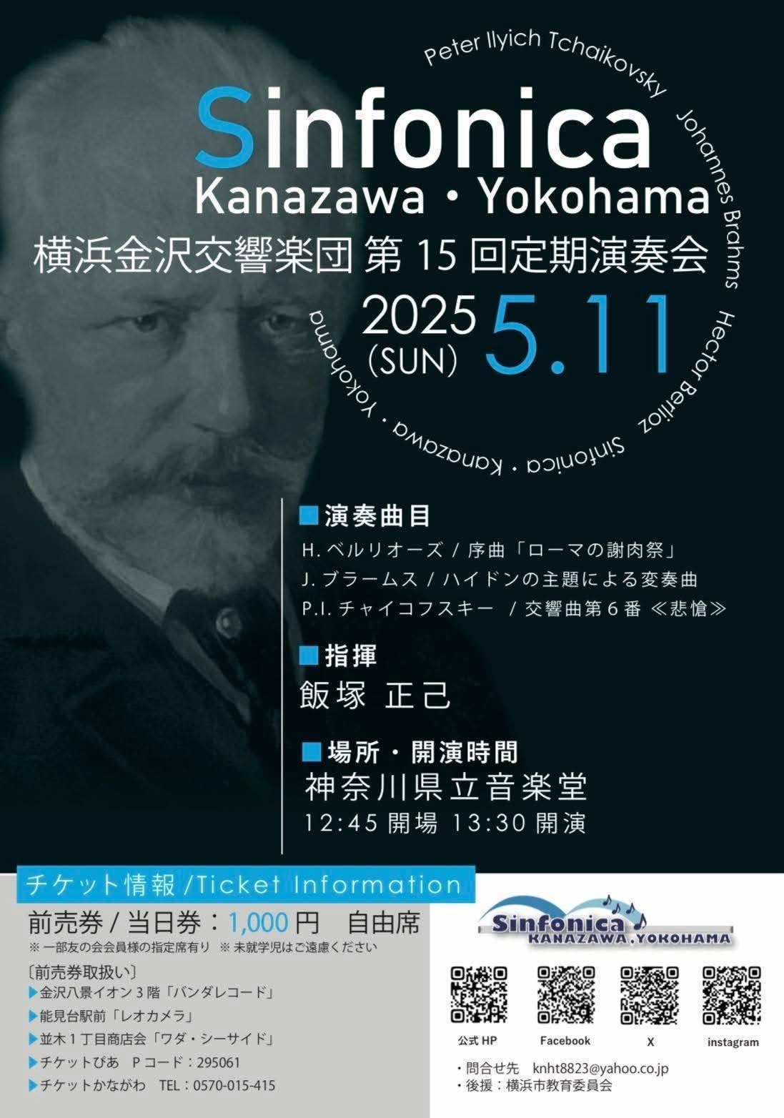 横浜金沢交響楽団による第15回定期演奏会では、クラシック音楽の名曲が存分に楽しめます。飯塚正己氏の指揮のもと、チャイコフスキーの交響曲第6番『悲愴』をはじめ、ブラームスやベルリオーズの作品が演奏され、壮大で感動的な時間を体験いただけます。