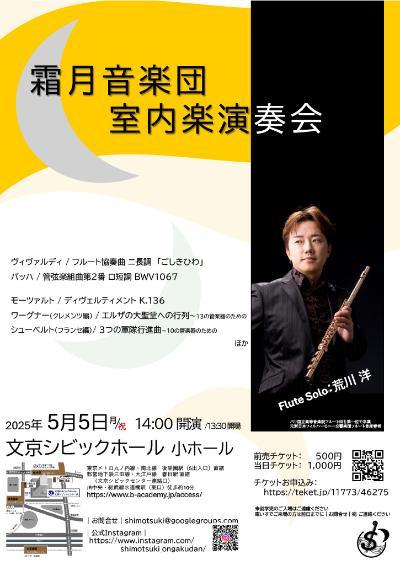 フルート奏者【荒川洋さん】をソリストとしてお迎えし、「ごしきひわ」「管弦楽組曲2番」を演奏致します!