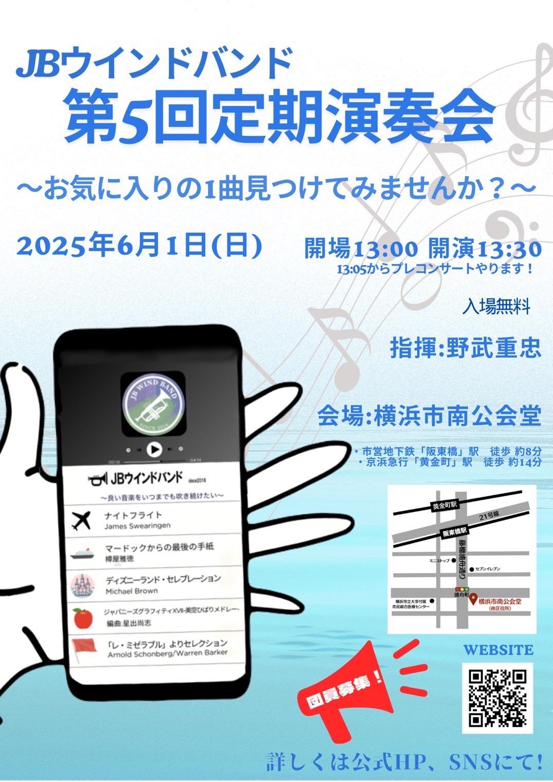わたしたちJBウインドバンドは、神奈川県横浜市、川崎市を拠点に活動している市民吹奏楽団です。