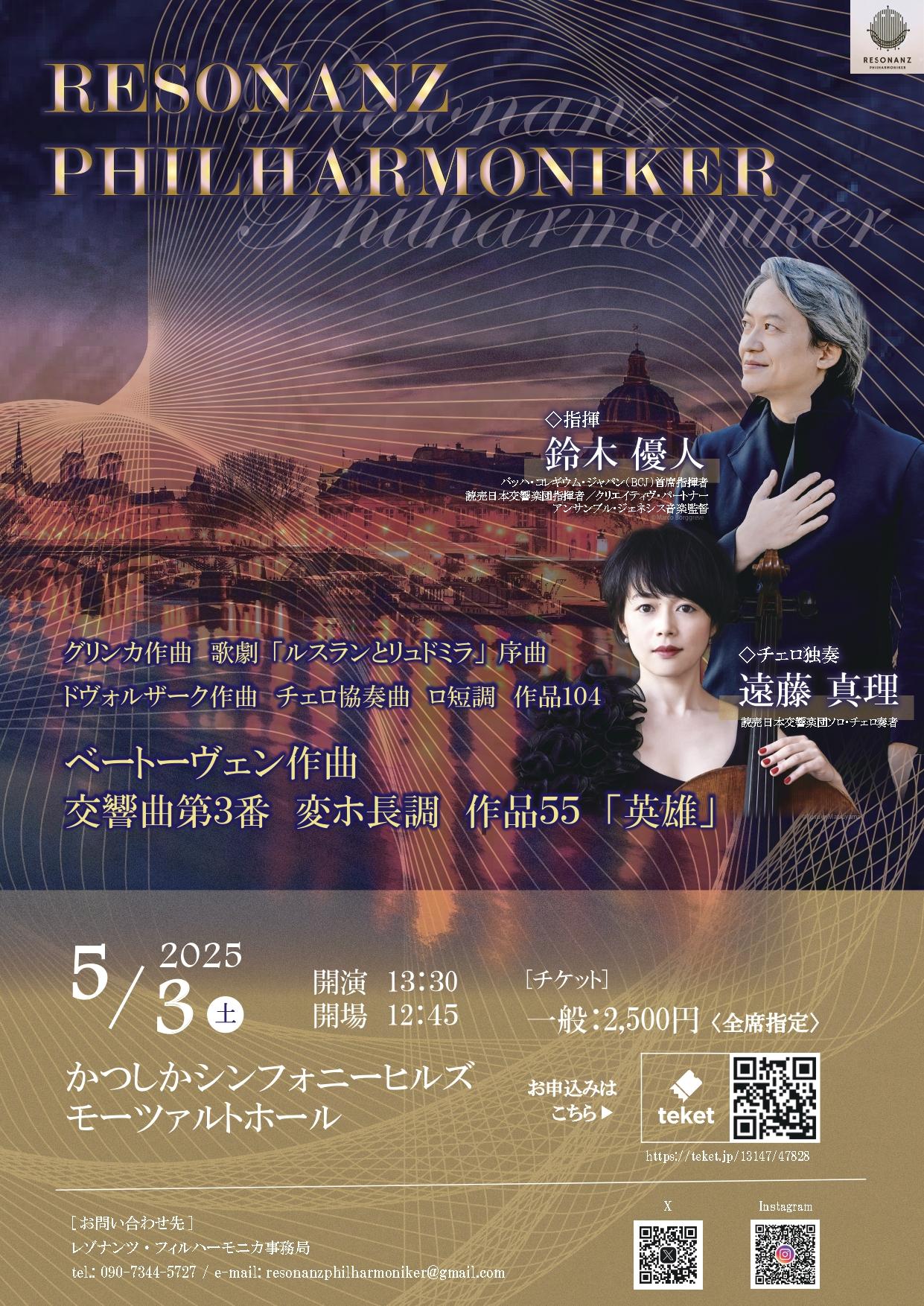 Resonanz Philharmoniker(レゾナンツ・フィルハーモニカ)は音楽を愛する者たちの企画であるBe Phil Orchestra Japanで出会い、1年半の時を経て再会したメンバーが中心となり、新しい仲間も加え、結成した新進気鋭のオーケストラです。メンバーは全国各地からこのイベントのために集まっています。Resonanzとはラテン語のResonare(re:再び、sonare:音が響く)を語源とするドイツ語であり、英語ではResonance と表記します。