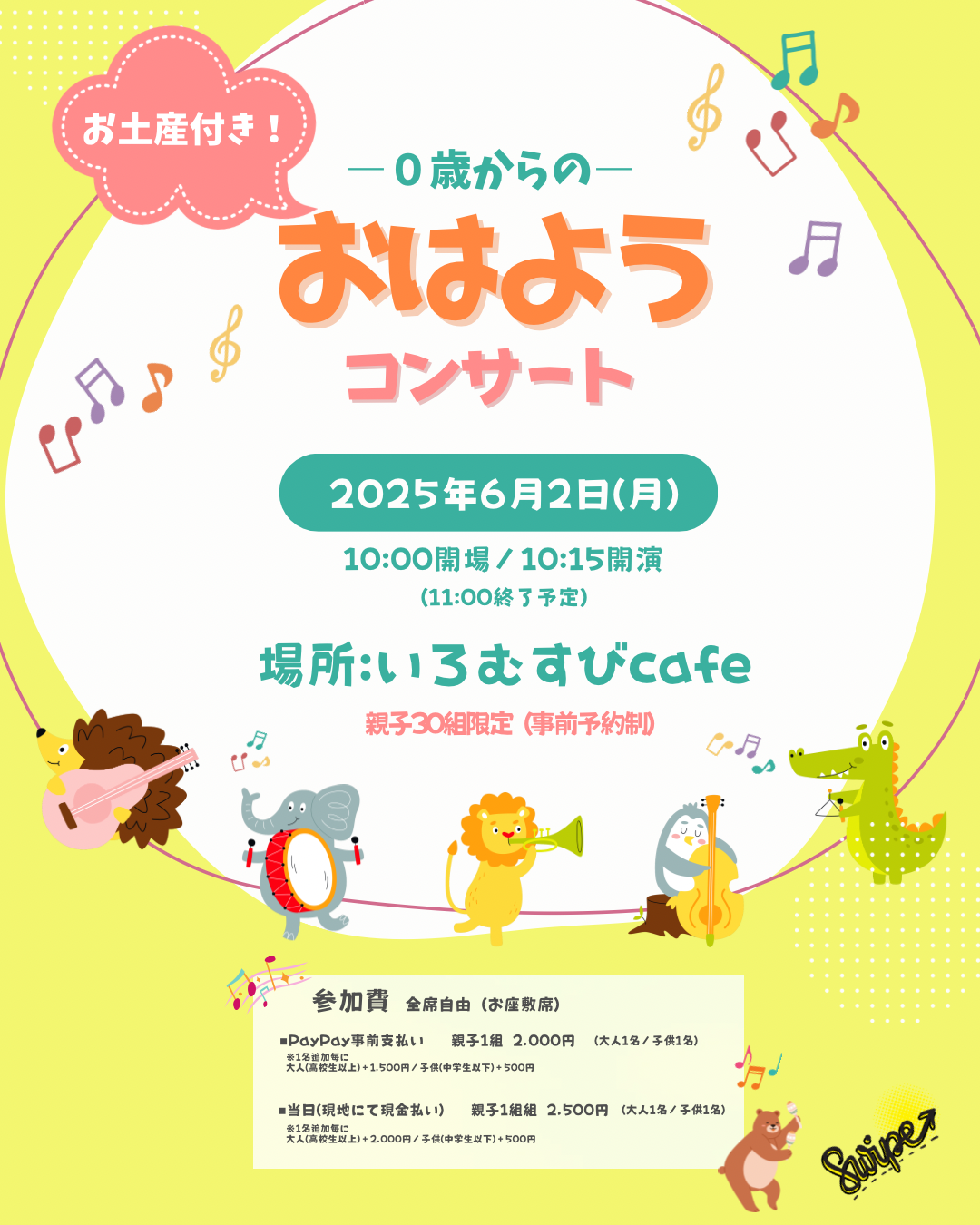 周りを気にすることなく、気軽に参加出来ますのでお子さまのコンサートデビューに最適です✨