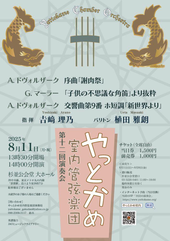 メインのドヴォルザークの「新世界より」は言わずと知れた名曲ですが、これまでの演奏概念にとらわれない吉﨑&やっとかめが織りなす「シン・新世界より」を目指します。
