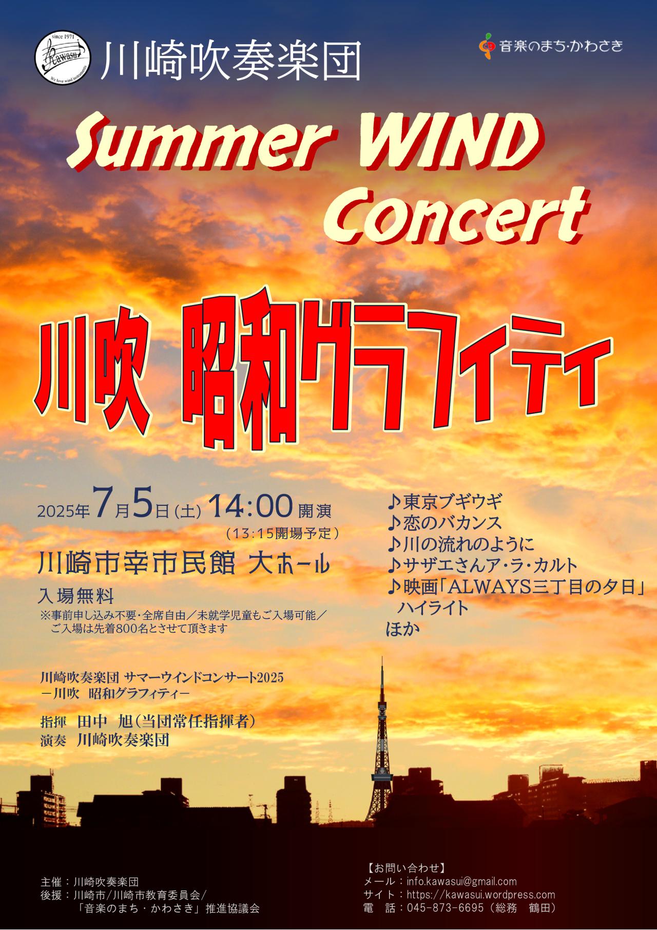 主催:川崎吹奏楽団/後援:川崎市、川崎市教育委員会、「音楽のまち・かわさき」推進協議会