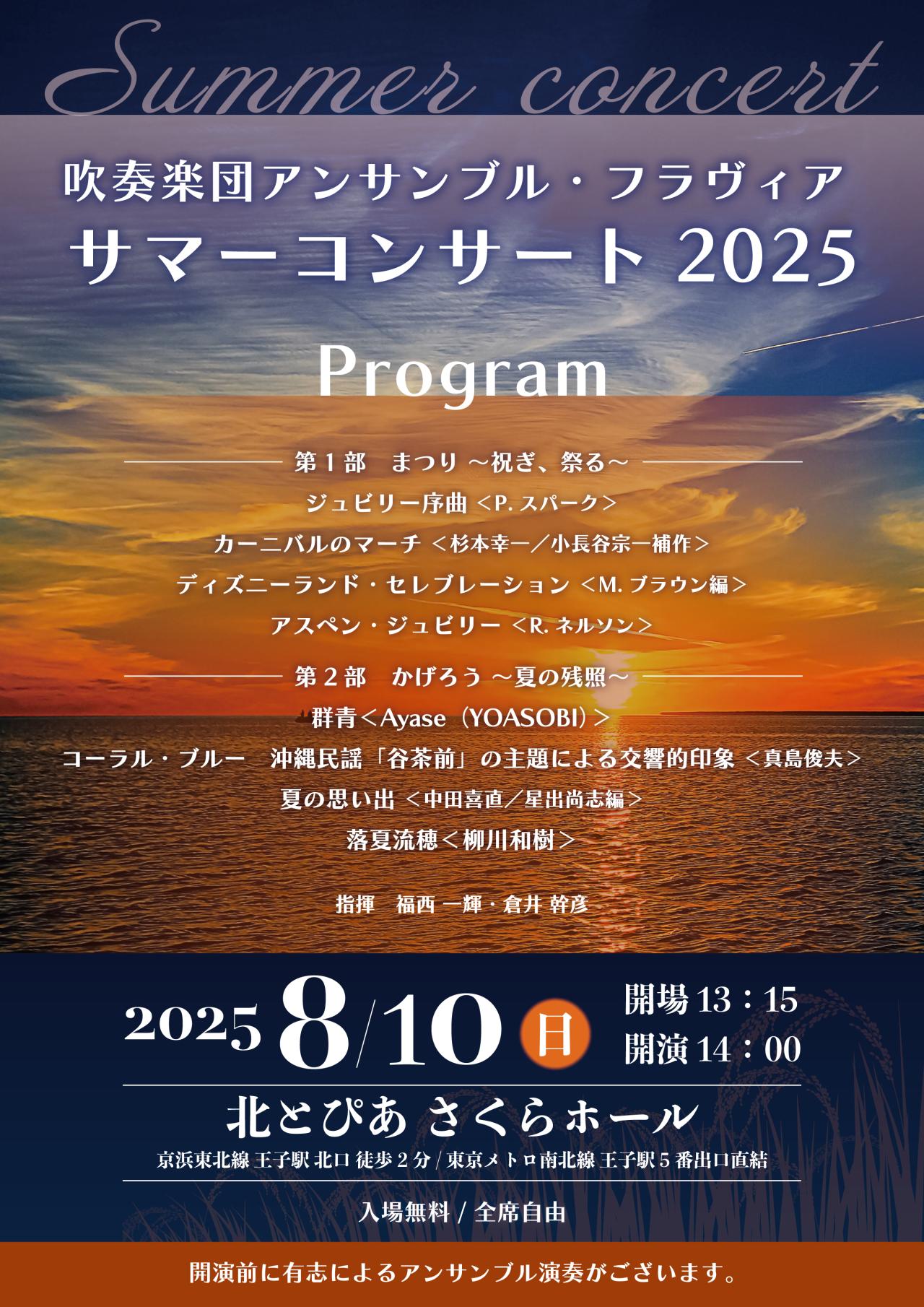 2025年8月10日(日)にサマーコンサート2025を開催いたしますので、ご案内させていただきます。