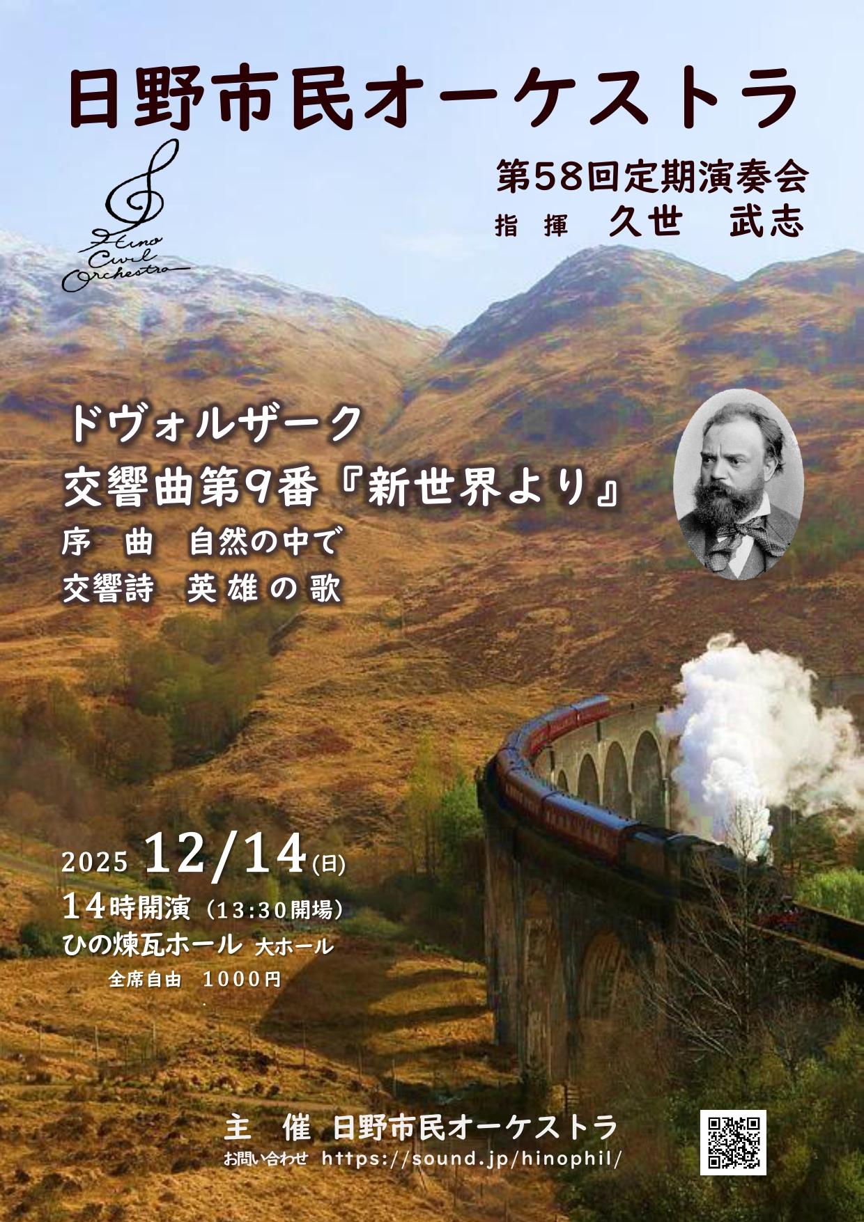 第58回定期演奏会は、指揮に久世武志先生を迎え、ドヴォルザークプログラムに挑みます。