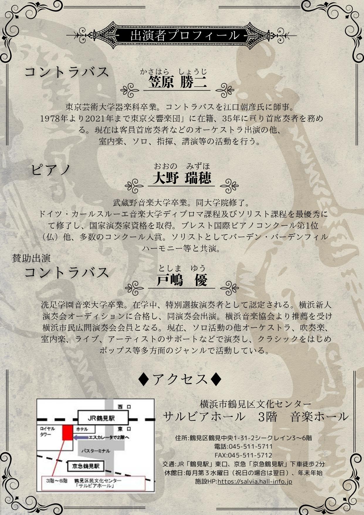 コントラバス 笠原勝二、戸嶋優 ピアノ 大野瑞穂