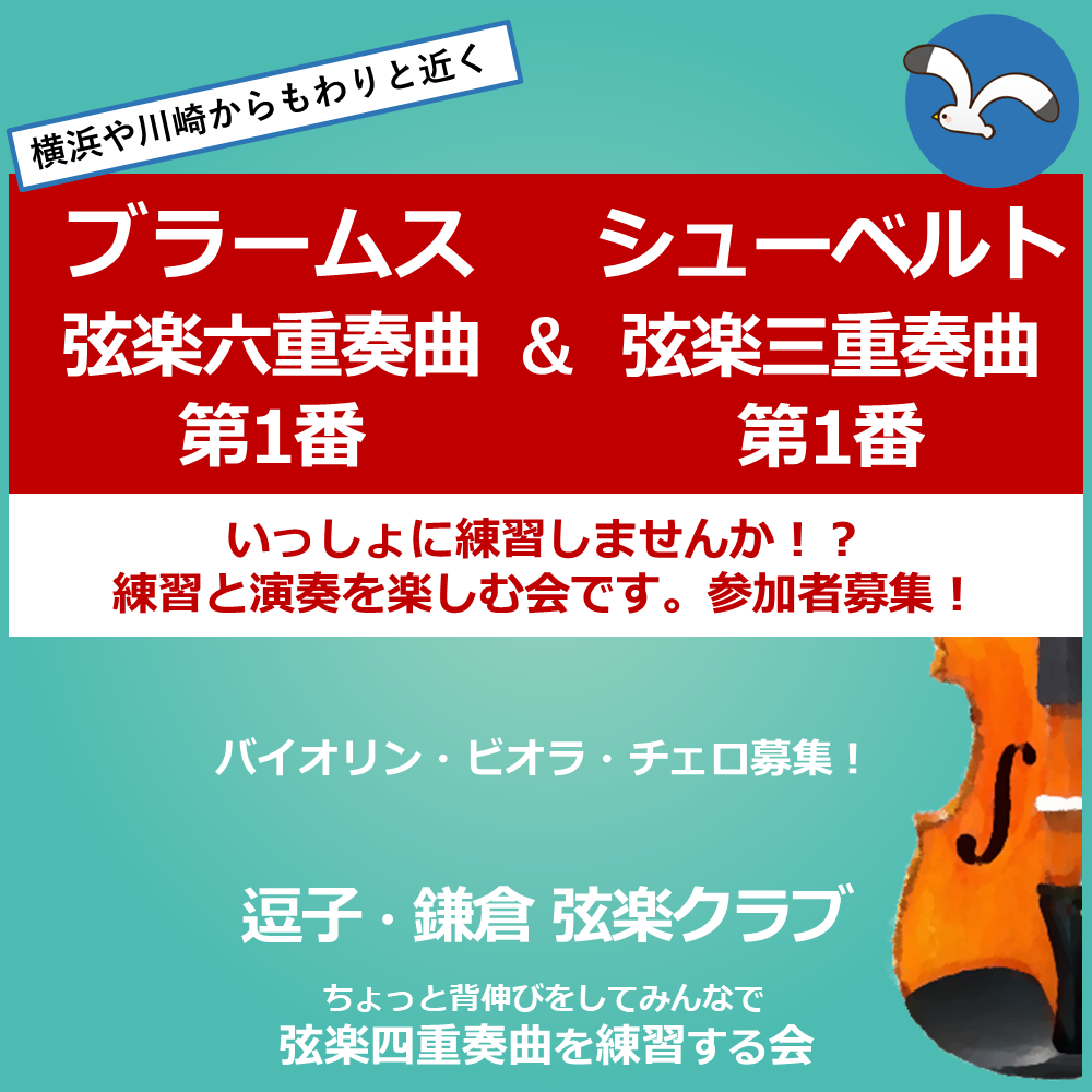 【神奈川】ブラームス「弦楽六重奏曲第1番」&シューベルト「弦楽三重奏曲第1番」を練習しませんか!?の団員・メンバー募集