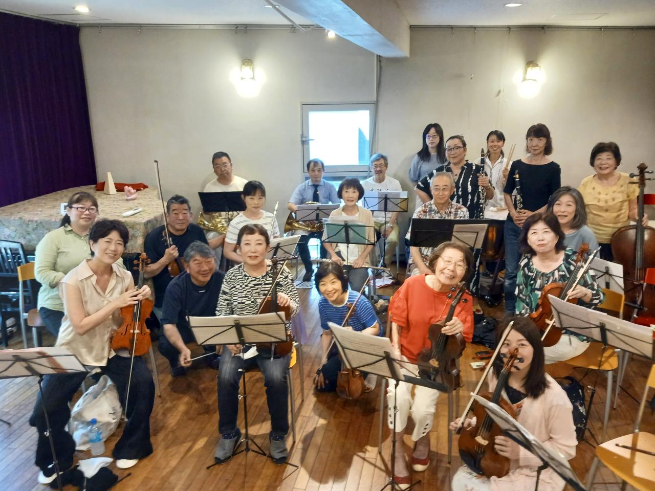※掲載の写真は、演奏会本番前の練習時の記念撮影です☺プロの演奏家の方々にもお手伝い頂き、和気あいあいとした楽しい雰囲気で練習できます🥰