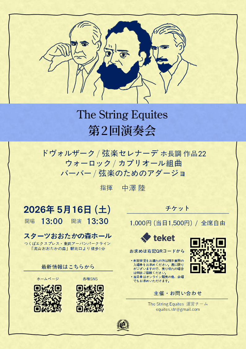 The String Equites (ザ・ストリング・エクイテス : 通称ストエク)は、東京・大阪の2拠点で活動するアマチュアの弦楽オーケストラです。「弦楽合奏の楽しさを多くの人に知ってもらいたい」「弦楽合奏を気軽に楽しんでもらいたい」という思いから2020年に設立されました。