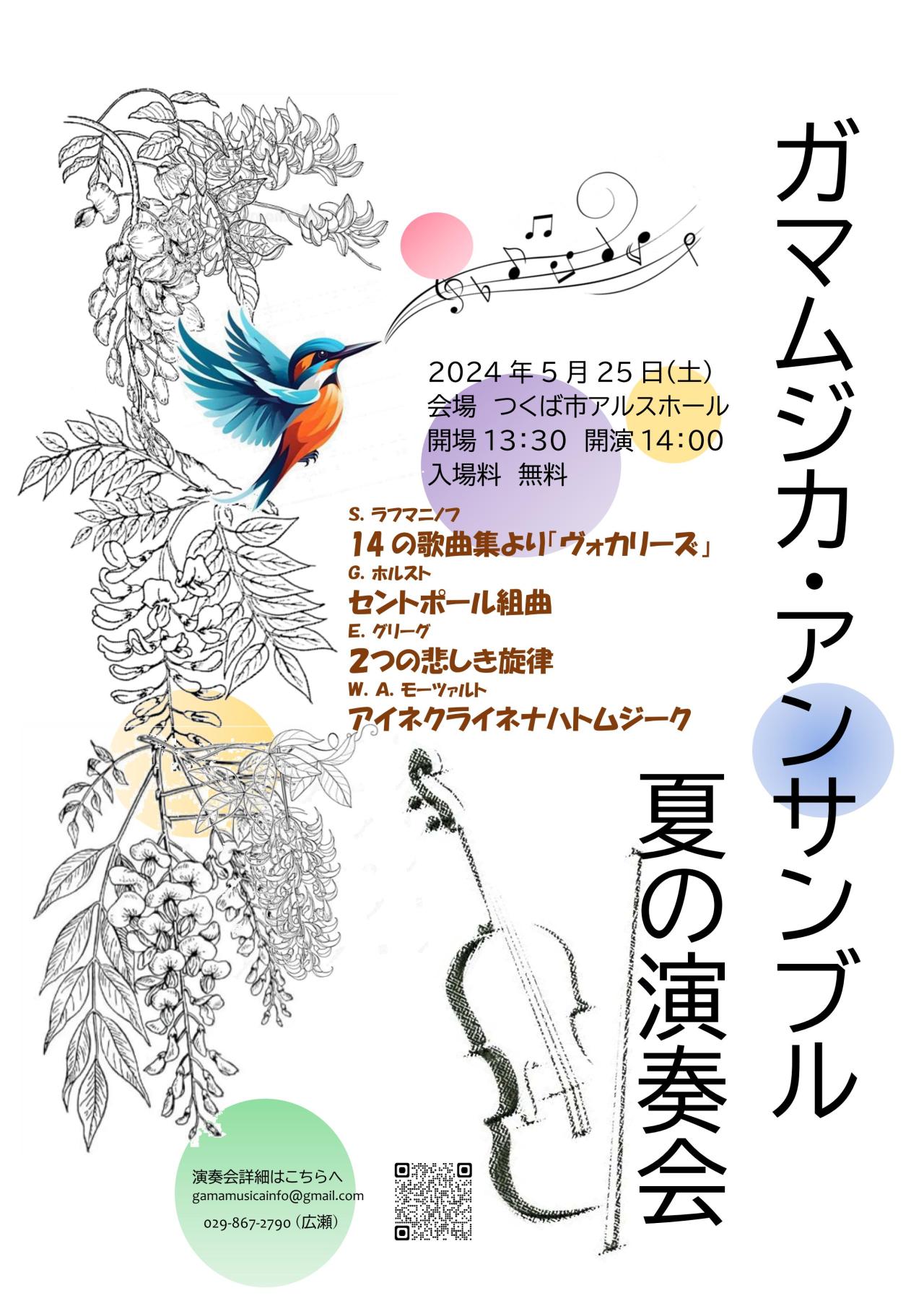お問合せは、ホームページからお願いします。※「アンサンブルファン」を見て問合せしていることをお伝えください。