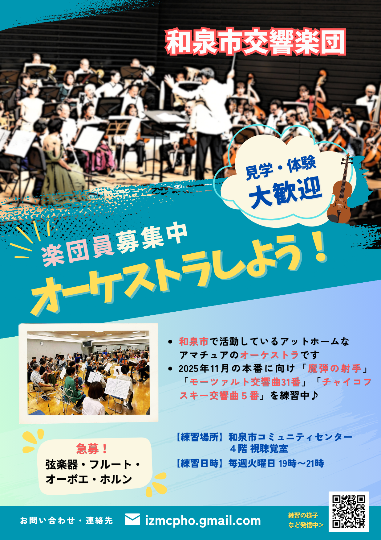 2025年11月9日第48回定期演奏会に向けて、チャイコフスキー:交響曲第5番、モーツァルト:交響曲第31番パリ、ウェーバー:歌劇《魔弾の射手》序曲を練習しています