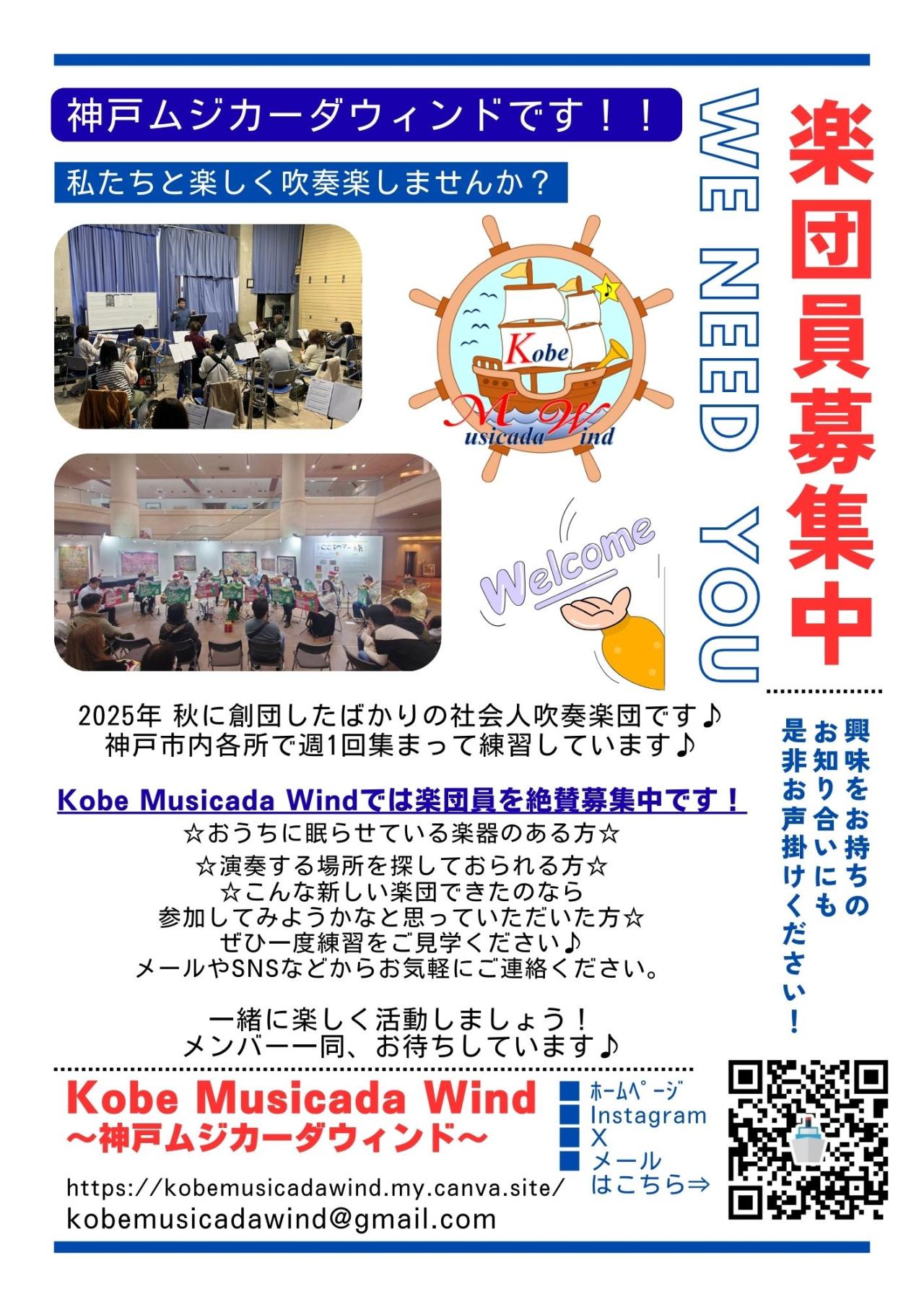 神戸市で活動をスタートした、新規の一般社会人吹奏楽団です♪