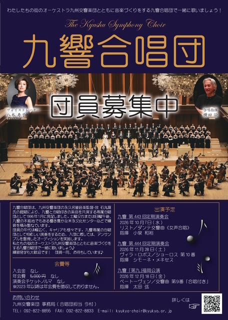 私たちの街のオーケストラ九州交響楽団と共に音楽づくりをする九響合唱団で一緒に歌いましょう!